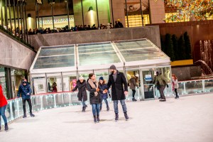 After our truly magical, fancy day. The helicopter picked us up and took us on a tour of Manhattan before dropping us off. We went back to the hotel and I completely crashed into a deep nap. I was pleasantly woken up with Alec telling me he had one more surprise in store for us that day.. “Do I have to shower?” I say groggy as my hair is literally stuck to my face from the massage oil. He said he booked us into skating at the Rockefeller Center. For anyone who knows me, I LOVE skating, growing up as a competitive figure skater, a rink held a close place in my heart and am a huge fan of big trees and the biggest Christmas Tree in New York? You didn’t have to ask me twice to get up and shower!
