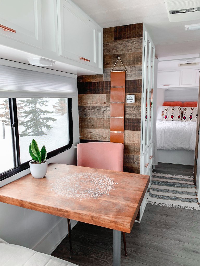 This is my absolute favourite place – this specific room. At first my mind was racing with the direction I wanted to follow in regards to design. I thought all white, sleek, mid modern which is basically my house goals. Then I decided I wanted the motorhome to be a bright happy place – something fun and out of the ordinary. Essentially wanted it to feel like we were always camping in a California Desert, with bohemian accents and an abundance of textures. I think I accomplished my goals.
