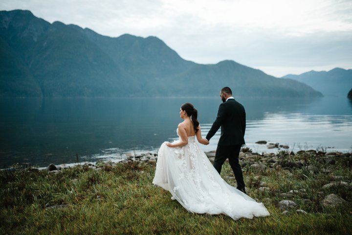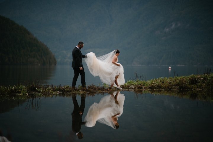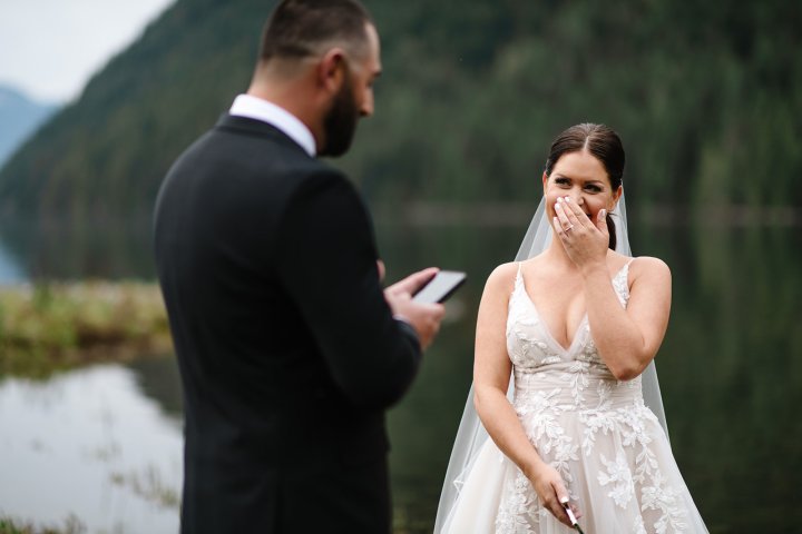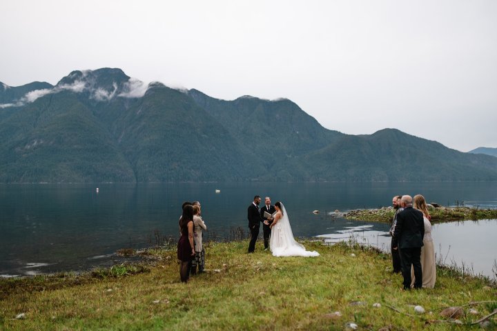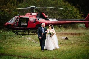 Last-minute, we had decided to invite our siblings and our parents to be a part of the small elopement ceremony on the mountain top. BUT, when we arrived at the Airport, the pilot gave us the bad news that the weather had caused a detour in our mountain top wedding and we were heading to the beach. My heart sank, and I laughed ironically at the fact that we planned all of this and booked 3 helicopters for our family members to go to a beach… Campbell River is surrounded by beaches…. We had our pick in town…. As I laughed and cried a little on the inside, I told my dad nothing else bad could happen unless it rained and I started singing “it’s like raaaainnnnn on your wedding dayyyyy”... by Alanis Morrsette. We continued to sing the melody and not the words. When I asked my dad what the rest of the lyrics are, he chuckled to himself and said they’re not appropriate for right now, and he would tell me later after the wedding.